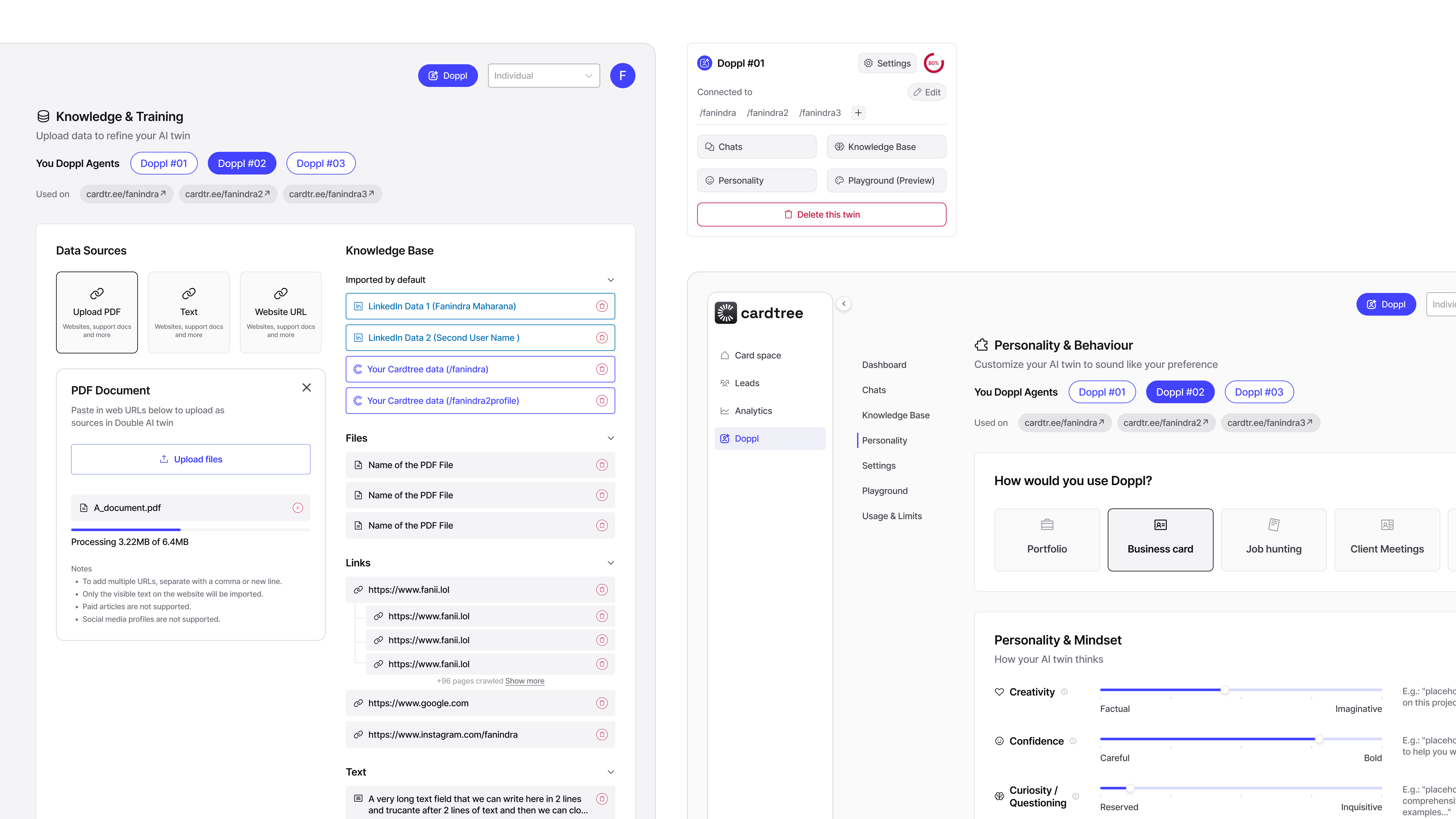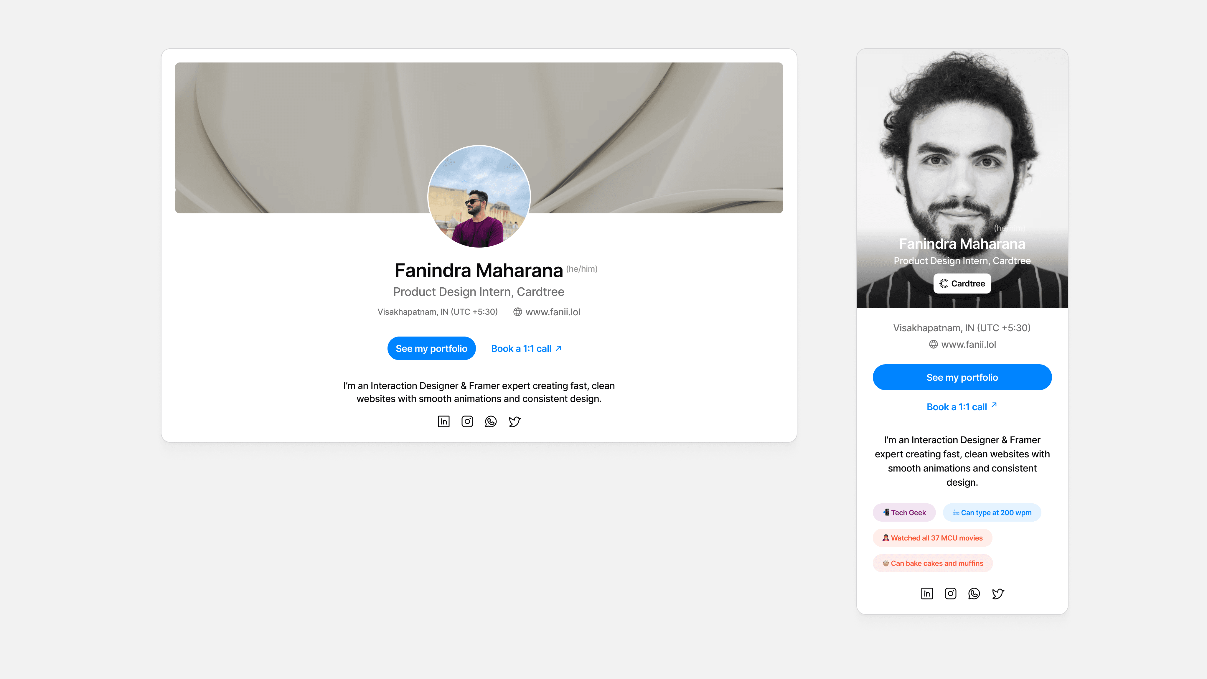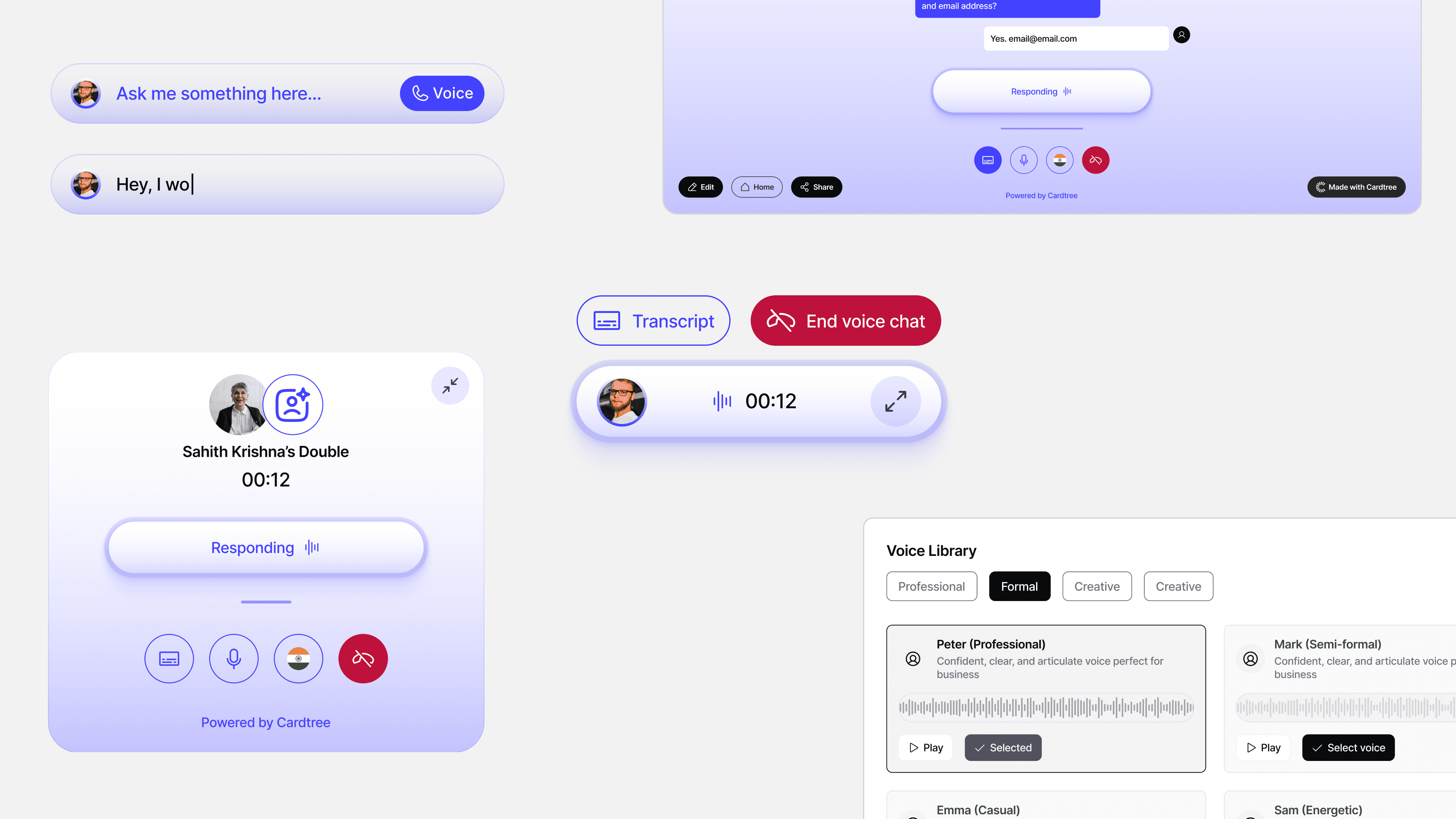 During my internship at Cardtree, as one of the founding designers, I contributed across the core product and the newly launched AI Twin. I designed and shipped multiple new widgets and user-facing experiences, while refining legacy components to create a cohesive system. My work also included working closely with developers to ensure design quality in implementation.