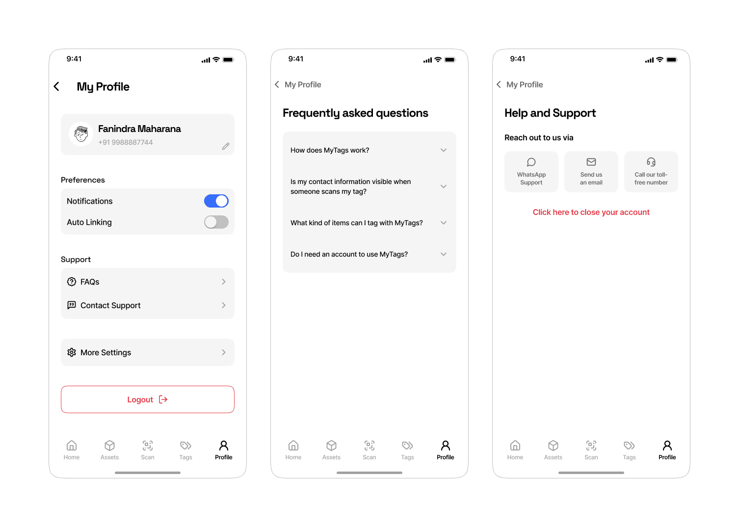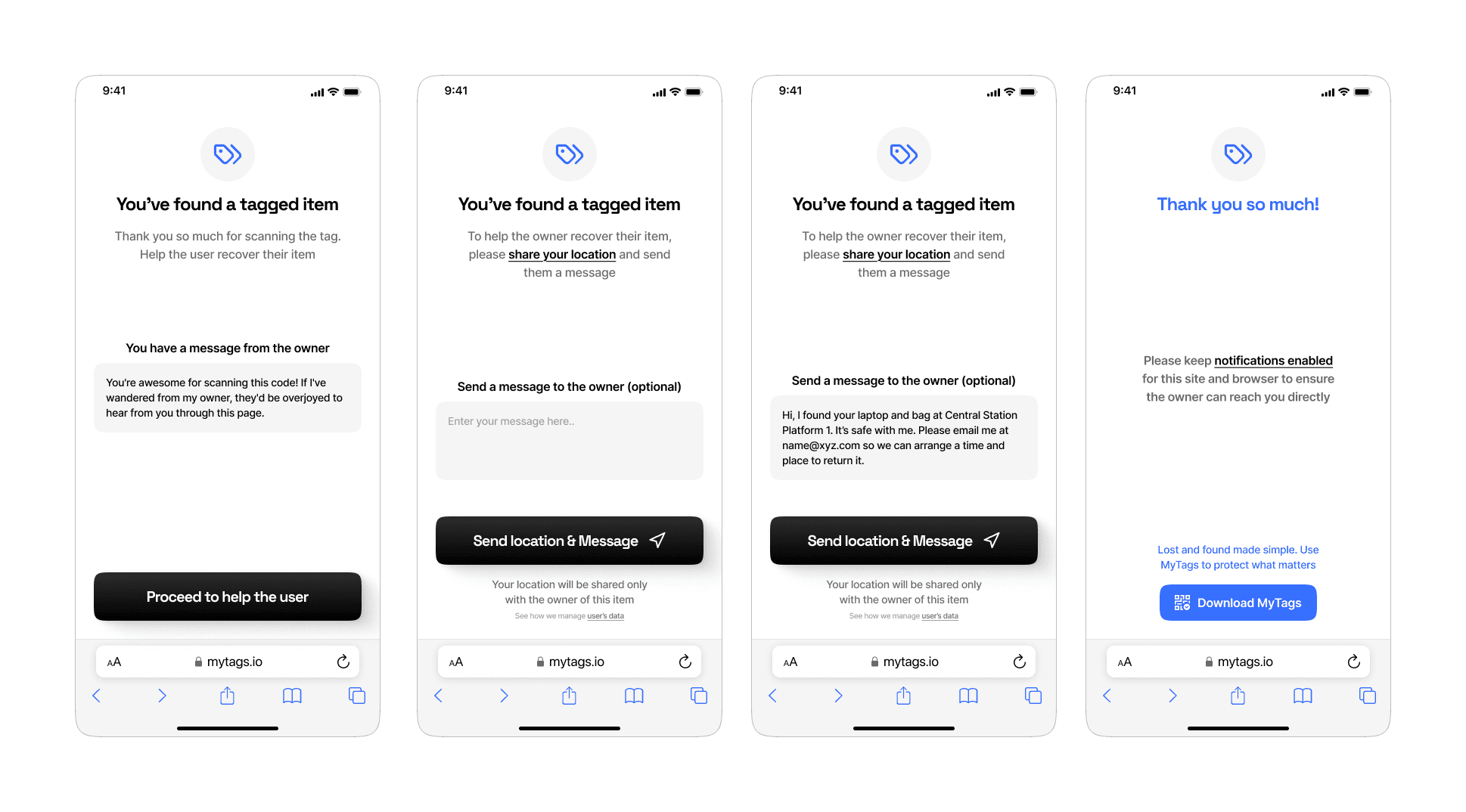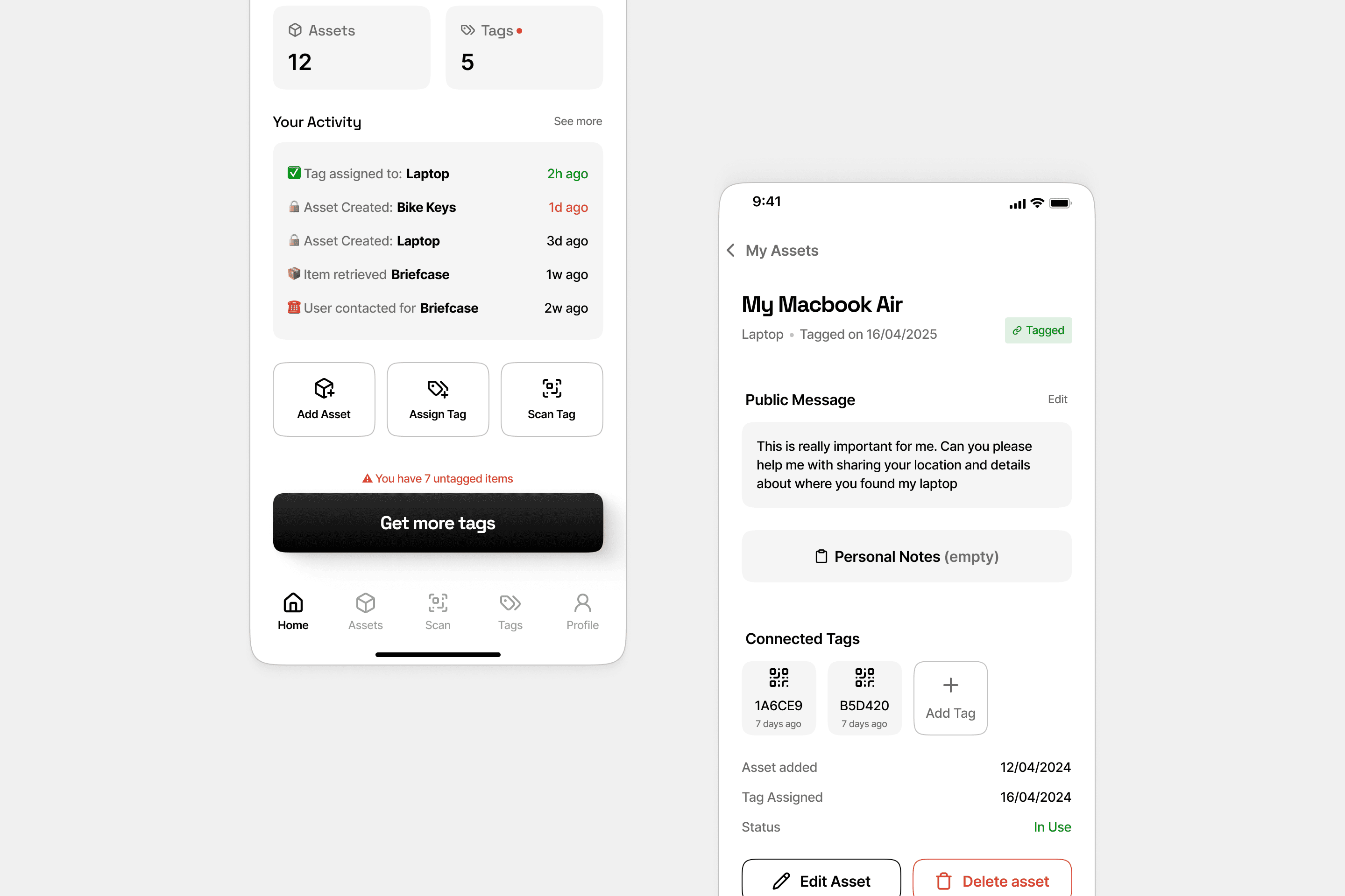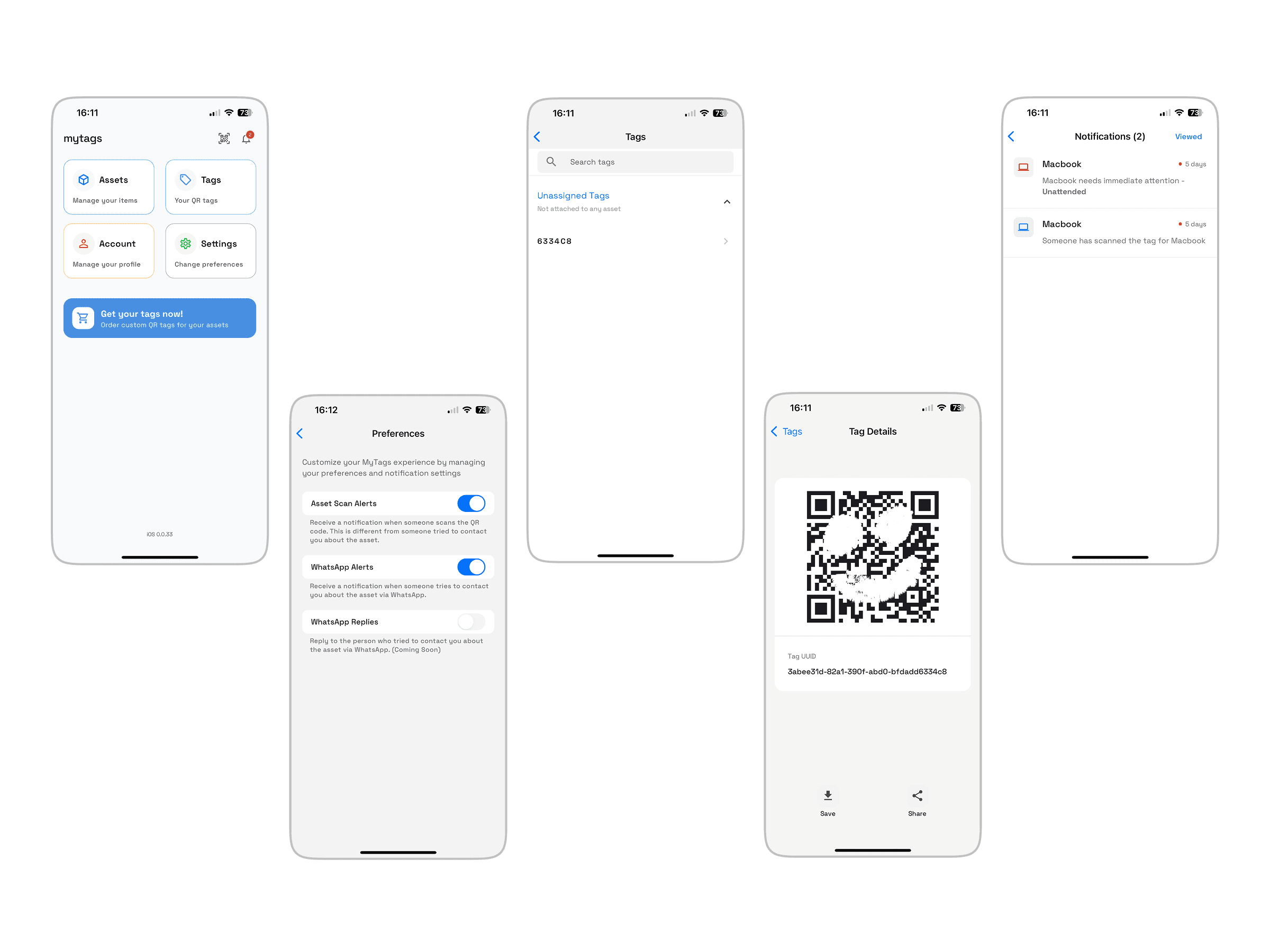MyTags is a utility-focused mobile app that helps users tag and track personal items using QR codes. When a tagged item is lost and found, the finder can scan the tag to view a custom message and contact the owner.